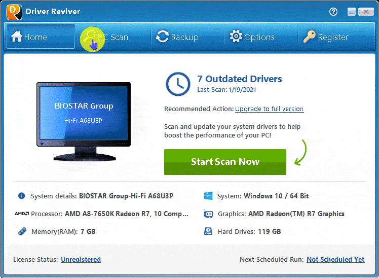 คลิก ไอคอนตัวเลือก (รูปเฟือง) คลิก แท็บทั่วไป ภายใต้การตั้งค่าทั่วไปคุณสามารถตั้งค่าการสแกนอัตโนมัติทุกครั้งที่เปิดตัว Driver Reviver หรือตัดสินใจเปิดใช้งานด้วยตนเอง (ซึ่งเป็นค่าเริ่มต้น) คุณยังสามารถเลือกได้ว่าจะให้ Driver Reviver ทำงานเมื่อคุณเริ่มคอมพิวเตอร์ ตัวเลือกนี้จะเปิดใช้งานโดยค่าเริ่มต้น