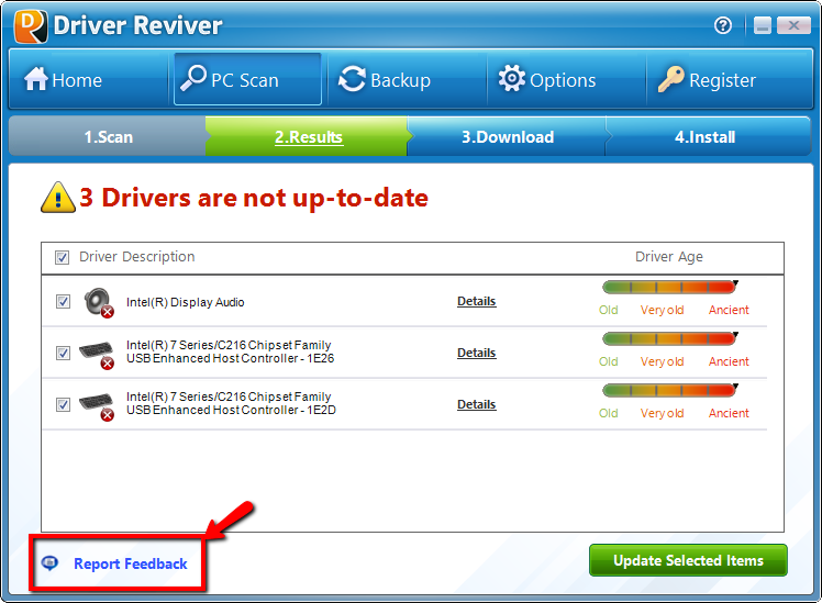 Driver Reviver includes a quick reporting tool to help you send in feedback and report them to our development team.
