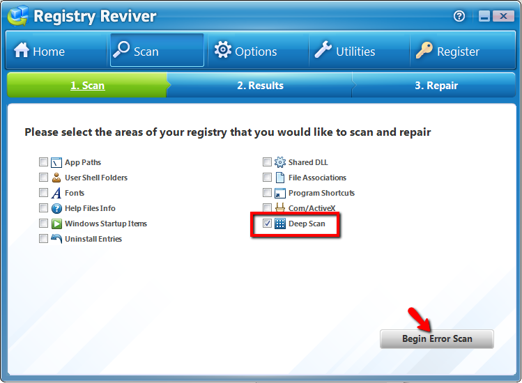 The Deep Scan is a feature of the product that performs an extensive (in depth) scan of the Windows Registry.
