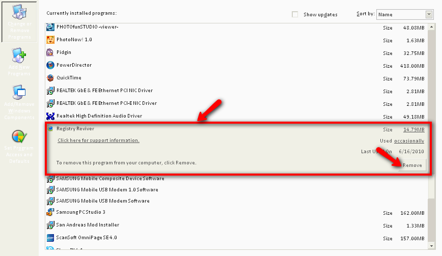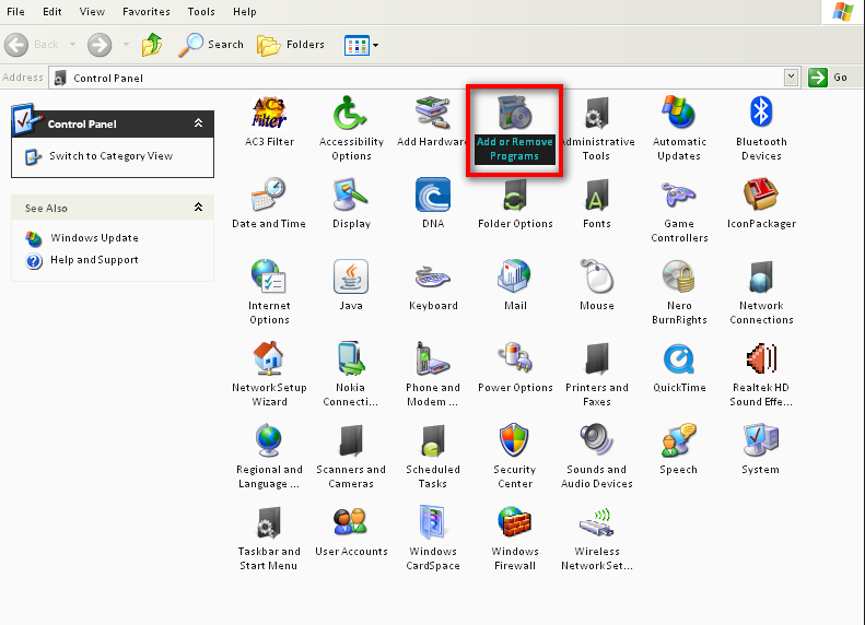 3. You should now be presented with the Add or Remove Programs window, listing all the programs installed on your computer. Simply select the program you wish to remove and click on the Remove or Uninstall button