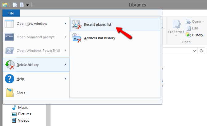 For Windows 7, please refer: Clearing the Recent list in Windows 7
